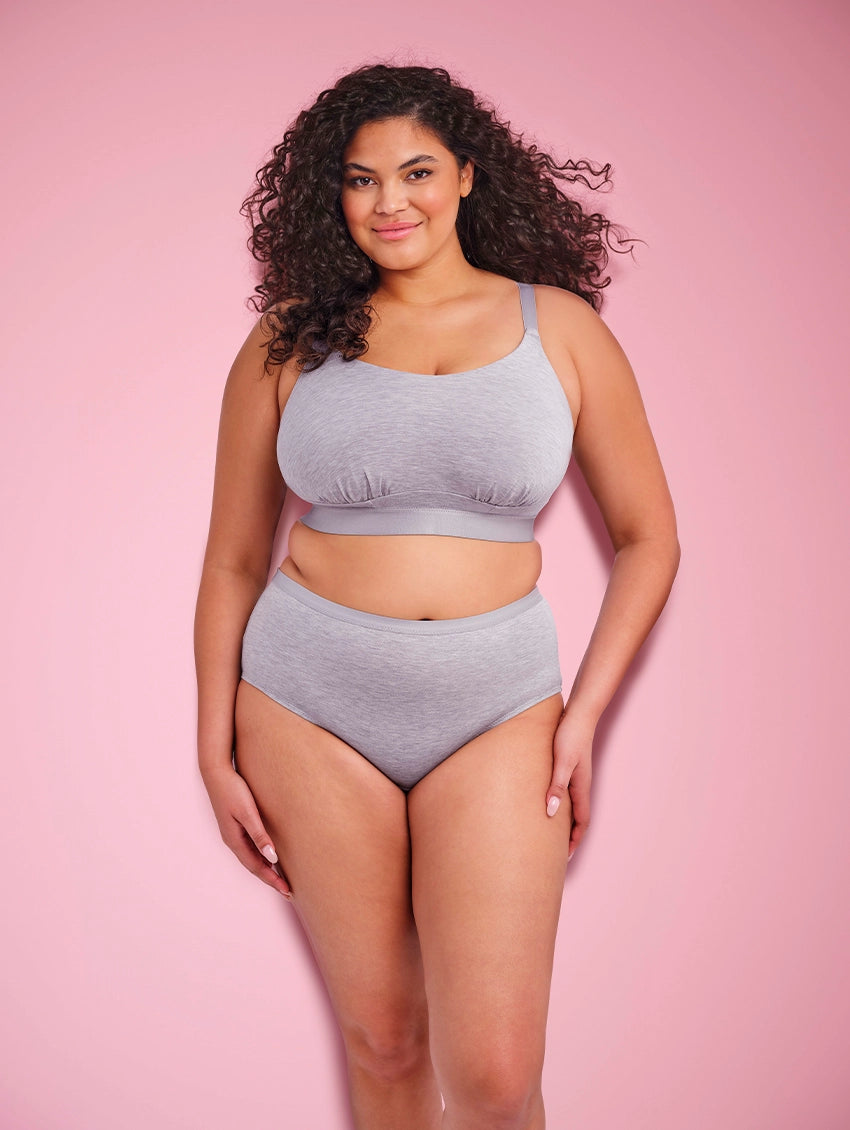 Kick back and relax in the Downtime Bralette from Elomi's new comfort collection. Our non-wired leisure bra looks like simplicity itself, with its soft touch Modal fabric in "goes-with-anything" Grey Marl. Its concealed inner structure provides support, without an underwire, while the soft gathers under the cup create capacity in a way that looks more like a crop top than a bra! Soft enough to sleep in, this will be your go-to bralette.