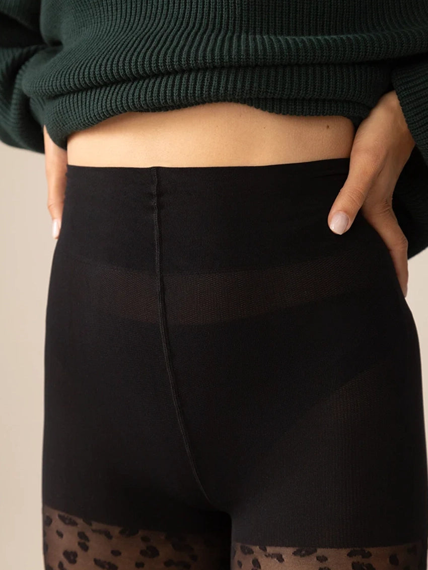Be bold and fierce with the Rachel Mini Leopard Tights. Featuring mini leopard print tights, flat seams, comfortable wide waist band, and control top panty for light support and all day comfort.
