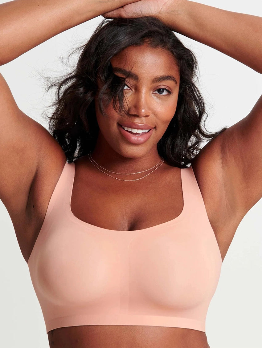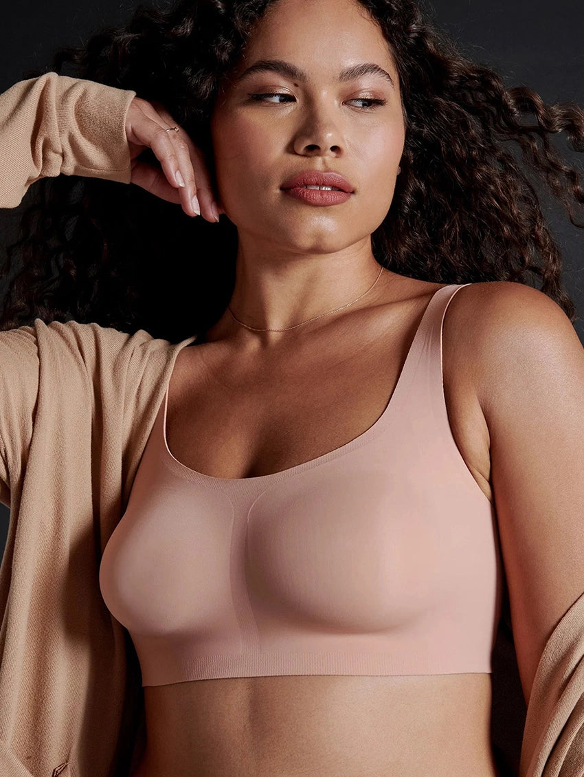 This incredible style by Evelyn & Bobbie is smoothing and seamless - so comfortable you'll forget you're wearing it! The Bobbie Scoop Bra provides amazing lift without a wire and feels weightless for everyday wear. This scoop design has thinner straps and a lower neckline and back for more wardrobe versatility. It also features removable pads, smoothing band and sides and no hardware.