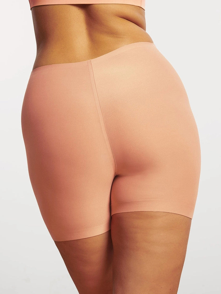 These thigh savers are functional, comfortable and cute! This longline short from Evelyn & Bobbie has a lengthened inseam to protect against thigh rub and features a wide leg band to anchor them in place. No rolling, no cutting, no chafing!