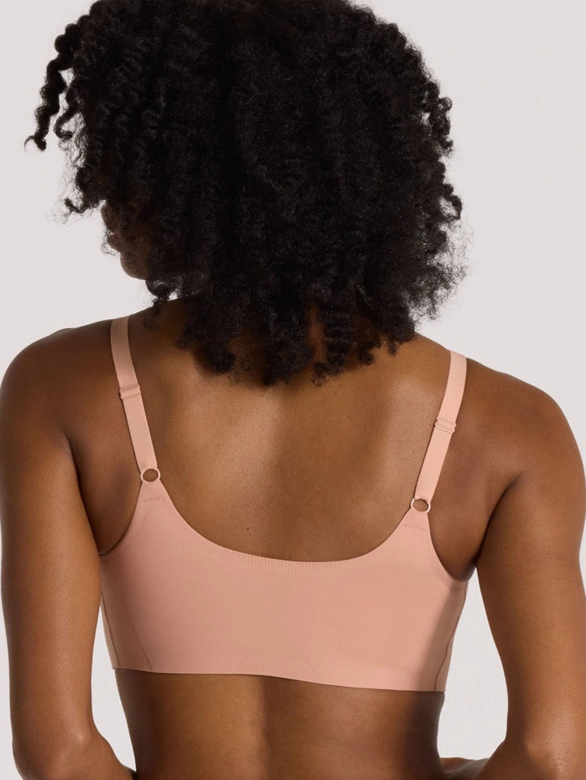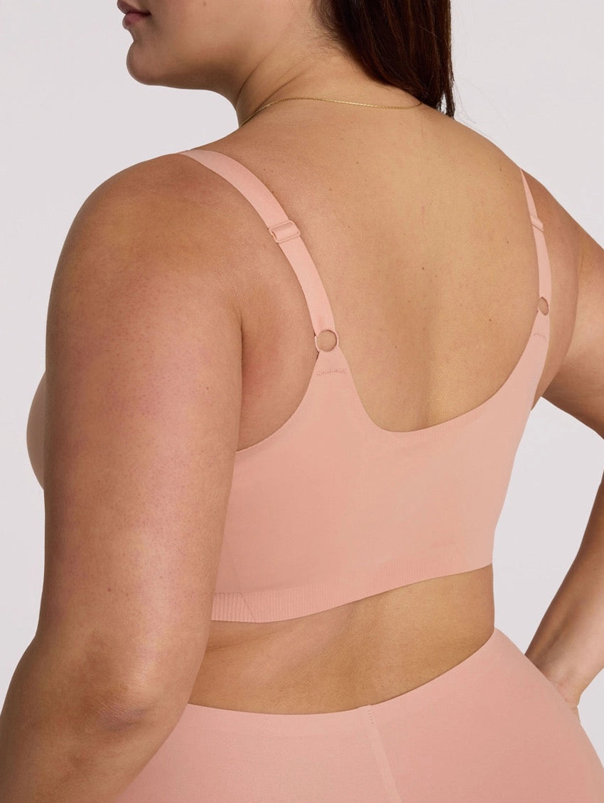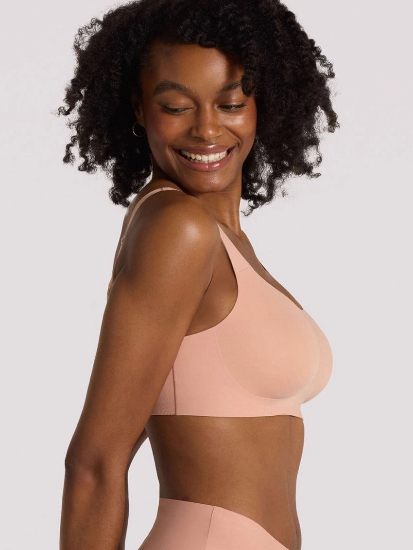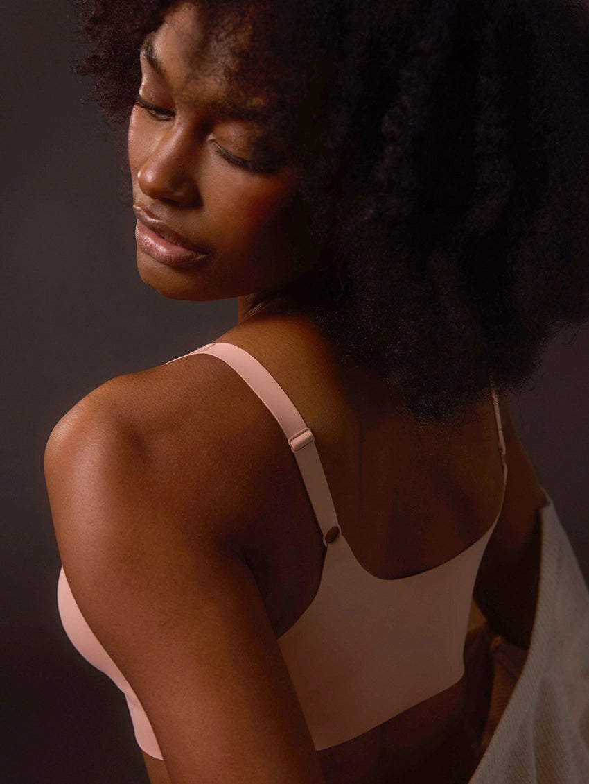 The leading brand in wireless bra technology has done it again! Evelyn and Bobbie have taken the most popular features from their best-selling bras and combined them into the new Structured Scoop Bra. This innovative wire-free bra incorporates The Evelyn's maximum lift, the Bobbie Scoop's romantic neckline, The Beyond's adjustable straps, and of course their Patented EB Core sling technology! The slender straps, low scoop neckline, and smoothing ability make this a wardrobe staple. Support, comfort, and lift, all in one exemplar design.