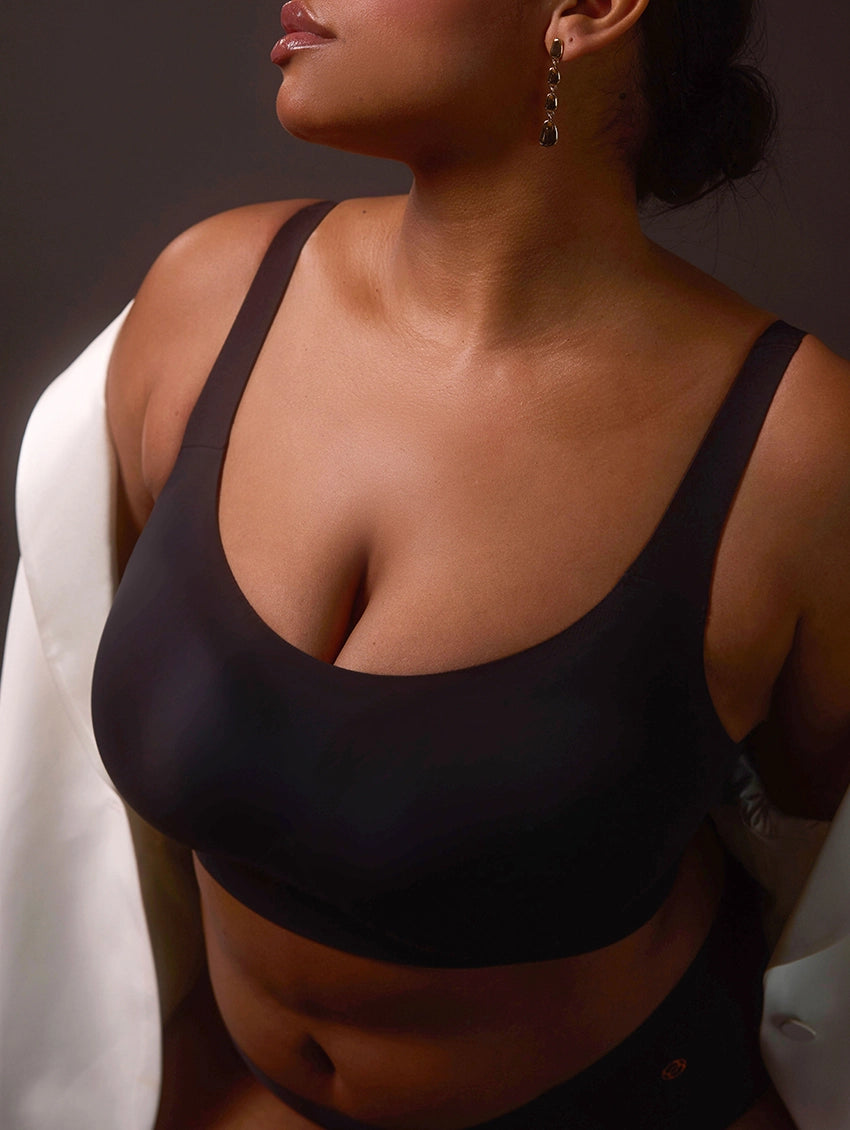 The leading brand in wireless bra technology has done it again! Evelyn and Bobbie have taken the most popular features from their best-selling bras and combined them into the new Structured Scoop Bra. This innovative wire-free bra incorporates The Evelyn's maximum lift, the Bobbie Scoop's romantic neckline, The Beyond's adjustable straps, and of course their Patented EB Core sling technology! The slender straps, low scoop neckline, and smoothing ability make this a wardrobe staple. Support, comfort, and lift, all in one exemplar design.