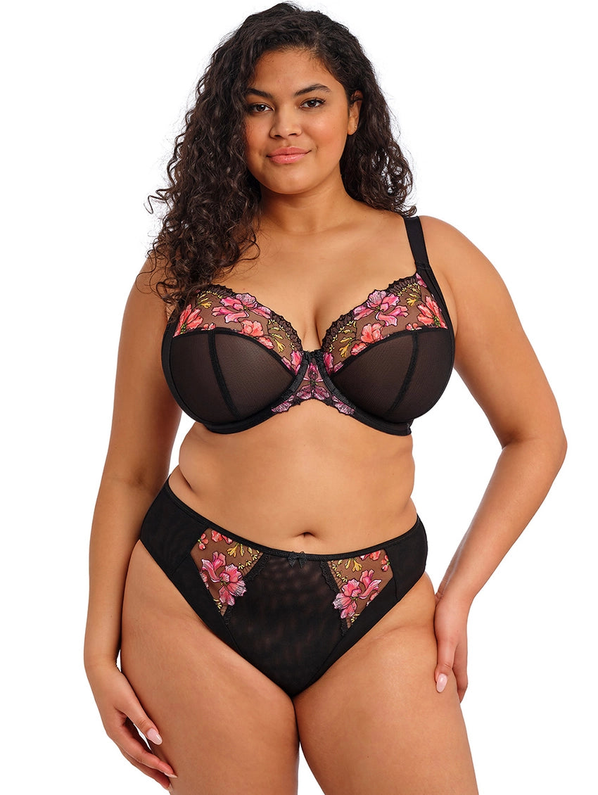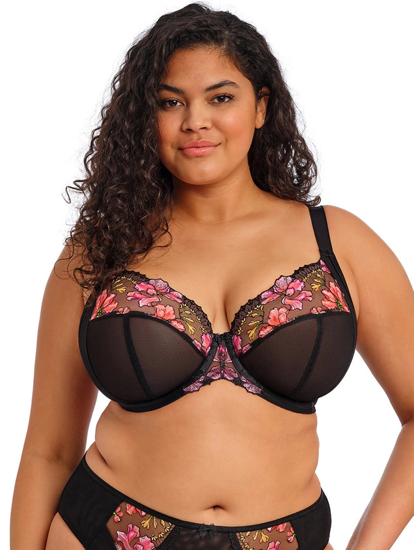The Teagan Plunge is a premium everyday bra from Elomi that will have you feeling expensive. This bra features a plunging neckline that's great for low cut tops, vertical seams for lift and support, and a beautiful floral embroidery.