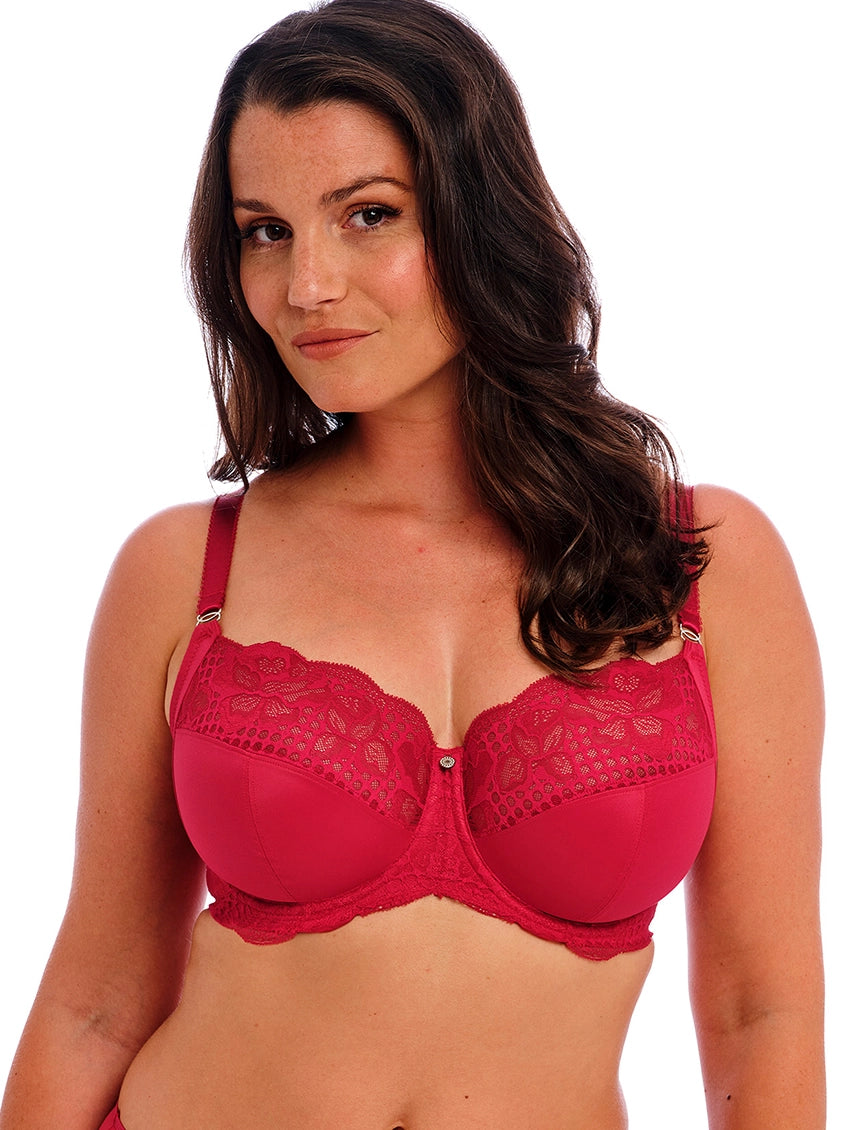 Comfort meets style in the Fantasie Reflect Side Support Bra. Made with luxurious stretch lace along the top cups and with three piece cups offers shape and lift. The comfortable bra for everyday wear.