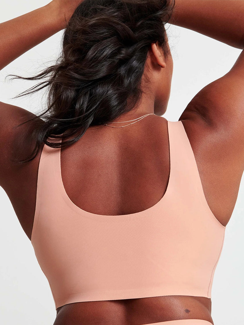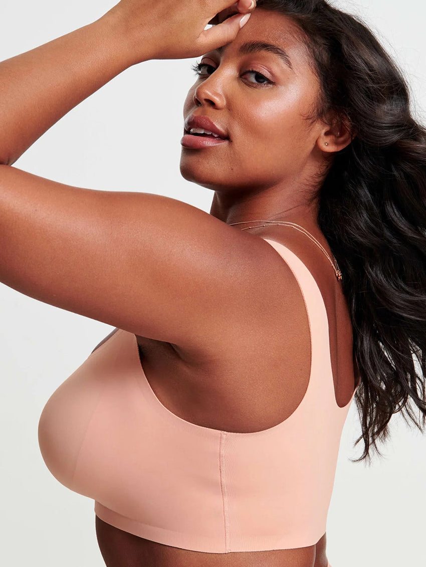 This incredible style by Evelyn & Bobbie is smoothing and seamless - so comfortable you'll forget you're wearing it! The Bobbie Scoop Bra provides amazing lift without a wire and feels weightless for everyday wear. This scoop design has thinner straps and a lower neckline and back for more wardrobe versatility. It also features removable pads, smoothing band and sides and no hardware.