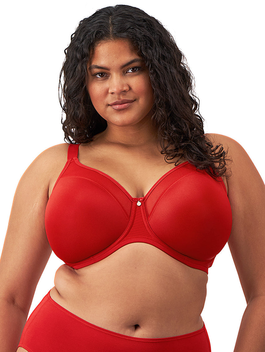 A lingerie staple, meet Elomi's Smooth Bra in Haute Red. Crafted from ultra-light Aerocool fabric to keep you cool and dry, while the tulle top cup gives a lighter look to the must-have style.
