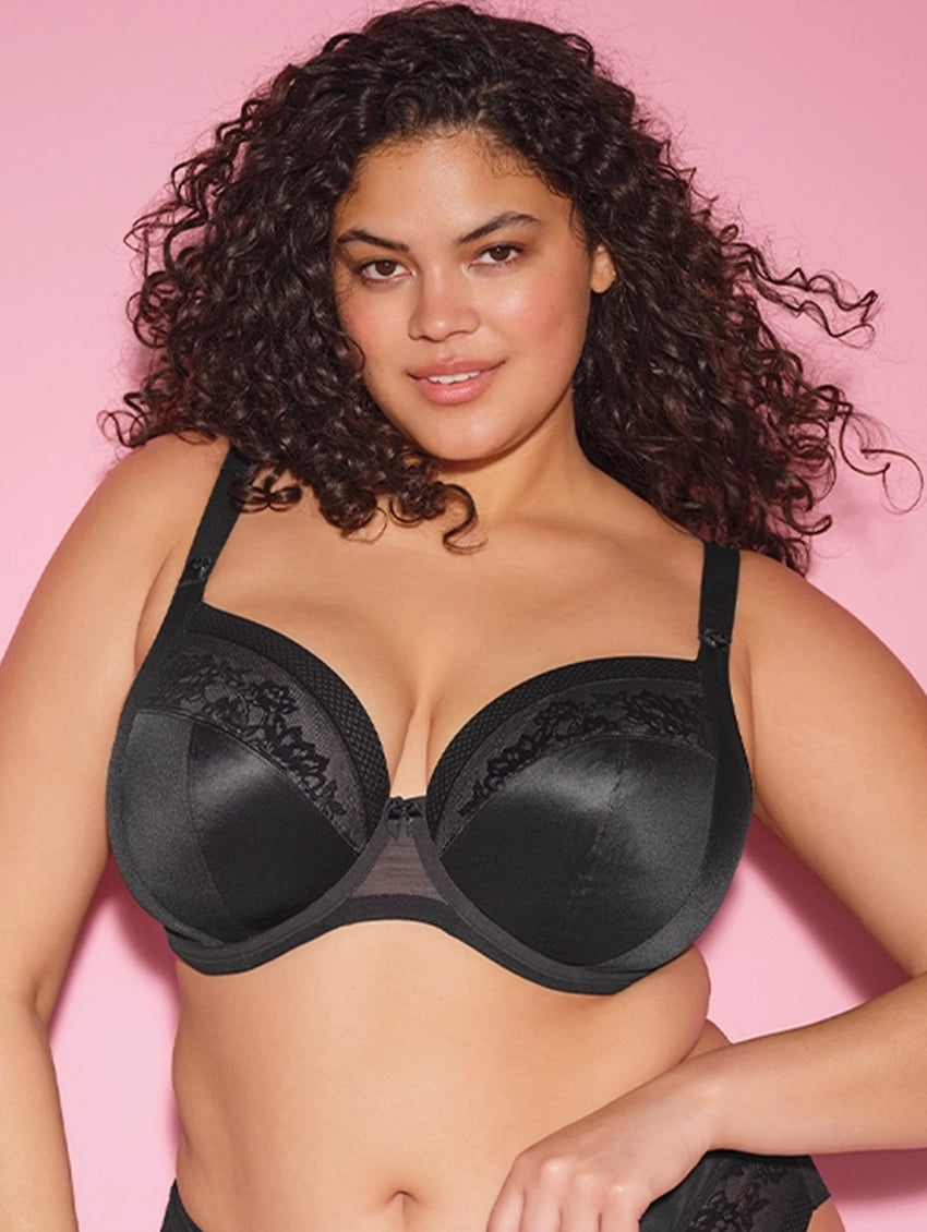 Classic black never goes out of style with Elomi's Nerina Plunge Bra. Inspired by the much-loved Lucie design, Nerina features a beautifully crafted stretch lace top for a smooth, rounded silhouette, a low center front for the right amount of plunge without any push-up, and a tall chimney back with flat lace to ensure a sleek, secure fit all day long.