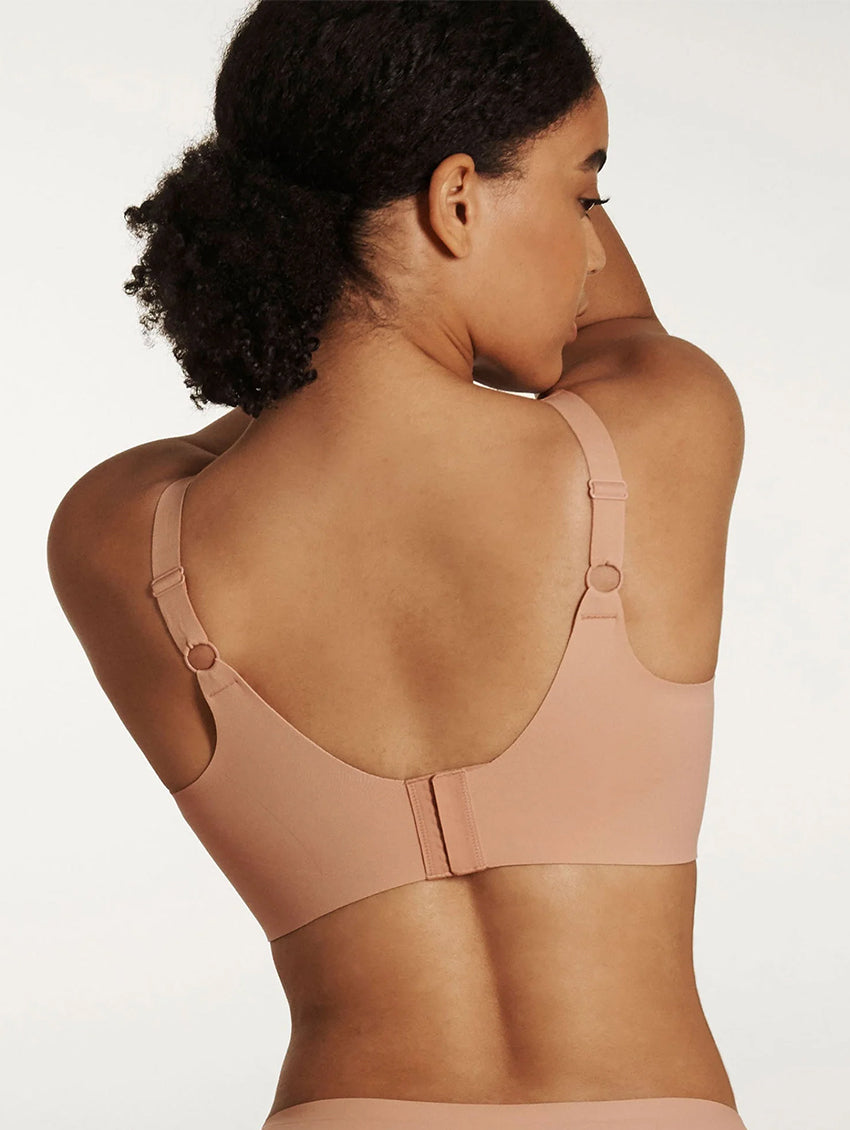 The Evelyn & Bobbie Beyond Bra gives great shape, support, adjustability, and comfort. With patented EB Core technology, this wireless bra offers incredible lift and separation unheard of for traditional wireless bras by lifting from below with their 3D sling. The Beyond Bra is also ergonomically designed to reduce shoulder and neck pain for all day comfort and the proprietary fabric molds to your shape within the first three wears giving you an easy, bespoke fit.