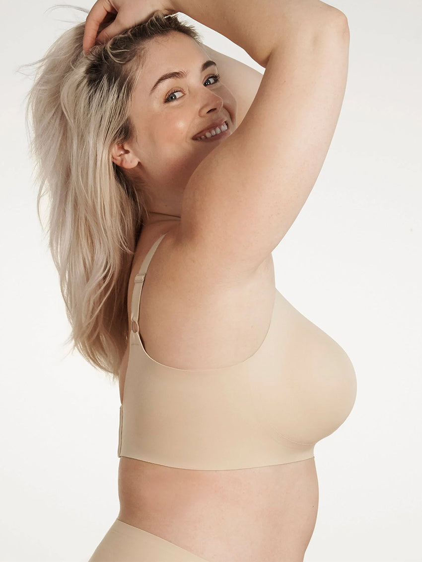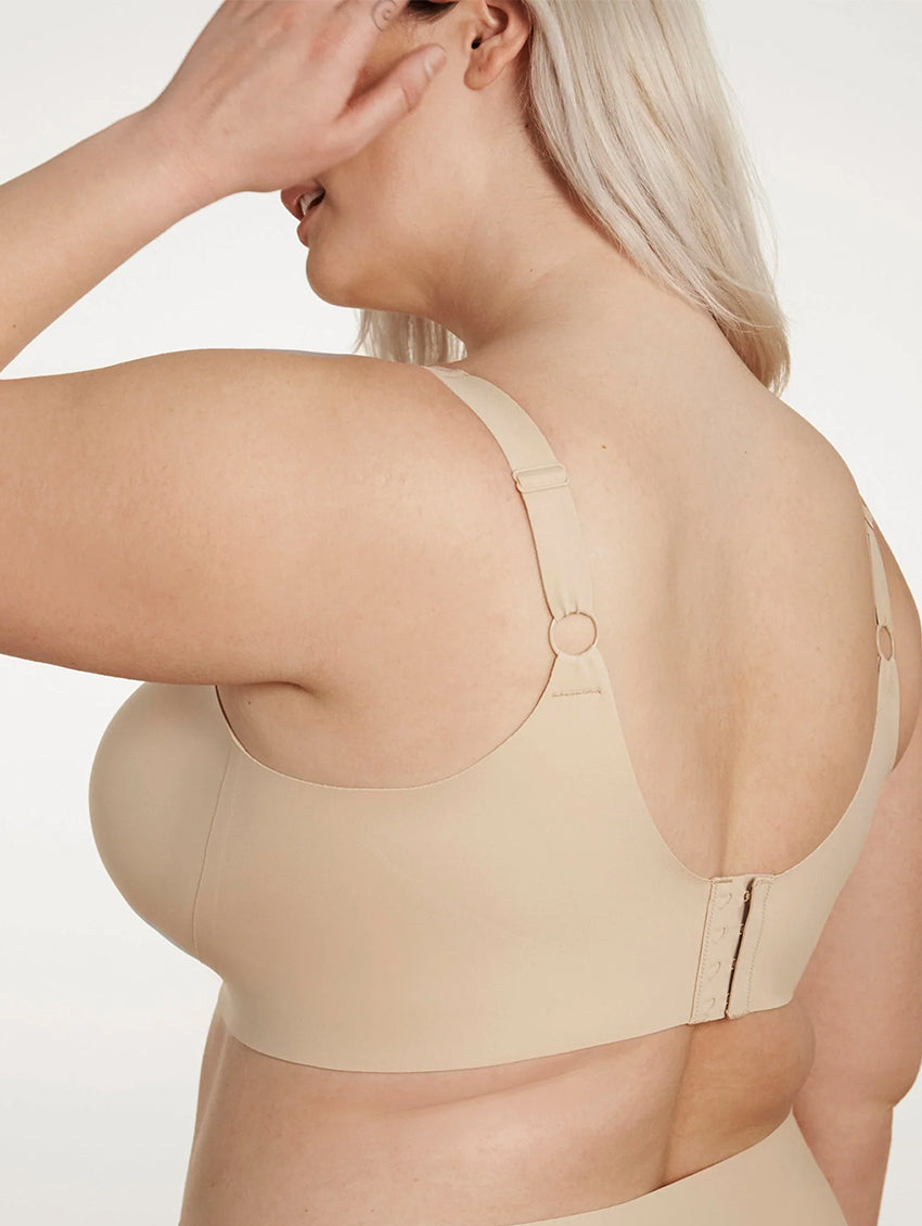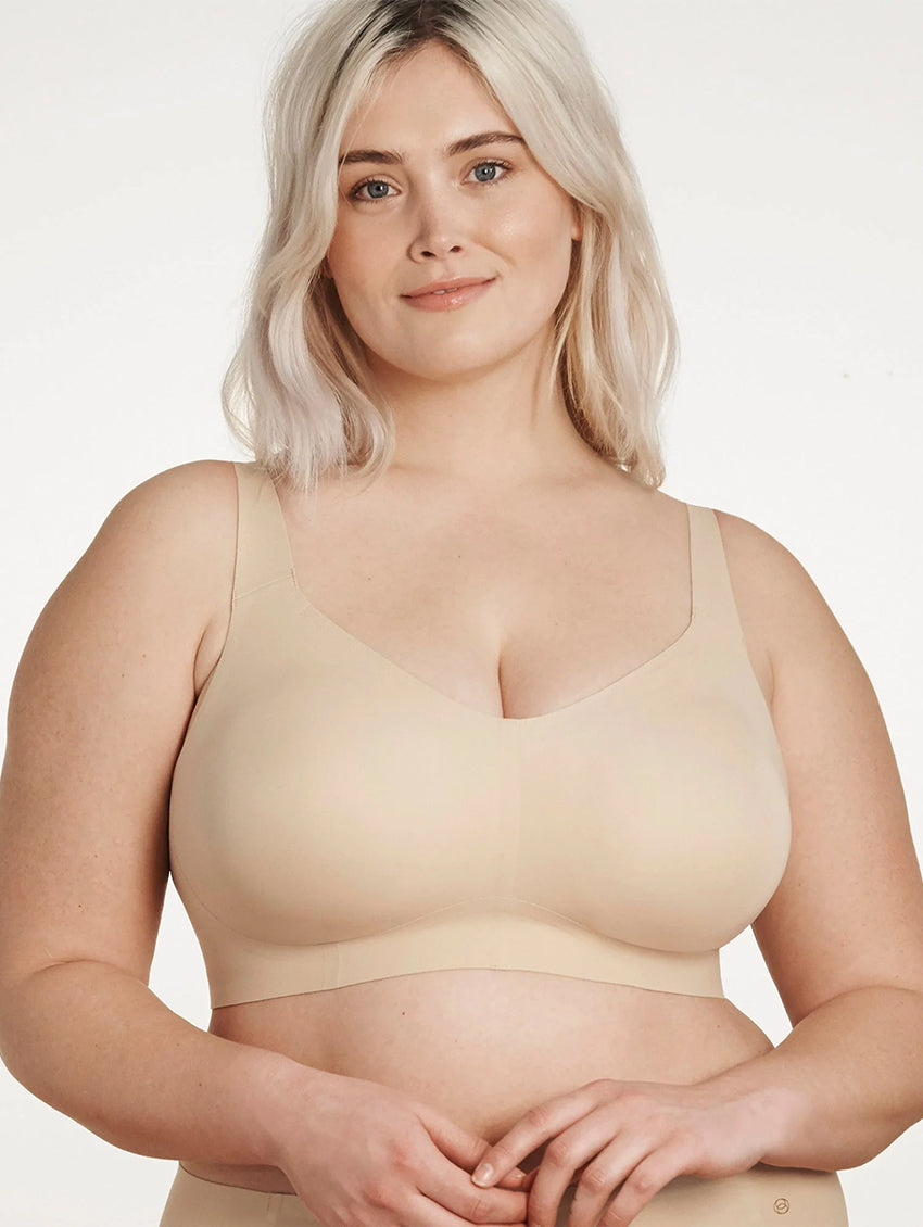 The Evelyn & Bobbie Beyond Bra gives great shape, support, adjustability, and comfort. With patented EB Core technology, this wireless bra offers incredible lift and separation unheard of for traditional wireless bras by lifting from below with their 3D sling. The Beyond Bra is also ergonomically designed to reduce shoulder and neck pain for all day comfort and the proprietary fabric molds to your shape within the first three wears giving you an easy, bespoke fit.