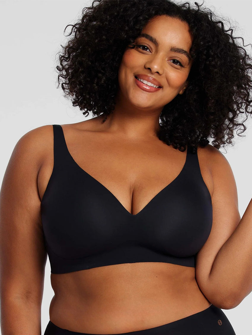 This incredible plunge style by Evelyn & Bobbie is smoothing and seamless - so comfortable you'll forget you're wearing it! The Starlette Plunge Bra provides amazing lift without a wire and feels weightless for everyday wear. This plunge design is their lowest neckline yet! With thinner straps and a hook and eye back closure this wonderful new addition is like the perfect blend of the Beyond and Evelyn styles. It also features removable pads, smoothing band and sides and no hardware for the utmost comfort.