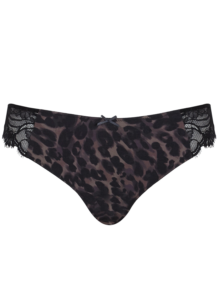 The charming Panache Cherie Brazilian panties are the beautiful match to the Demi Plunge Bra in a gorgeous lace and animal print fabric that is super soft against the skin, making it comfortable for everyday wear.