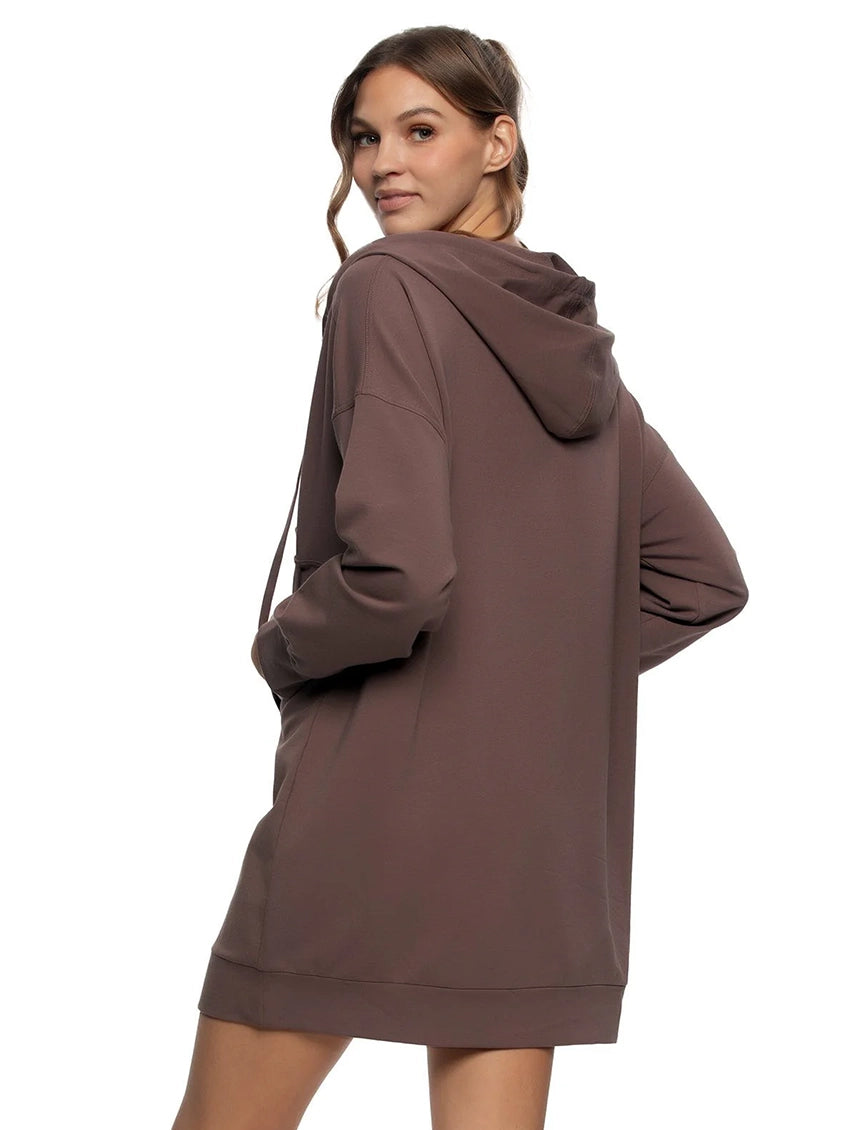 Stay extra cozy this fall season in the Piege Kimora Hoodie Dress. Made from soft French terry fabric for all day comfort, adjustable drawstring hoodie, kangaroo pocket for your hands or essentials, and flattering length for layering with leggings or without.