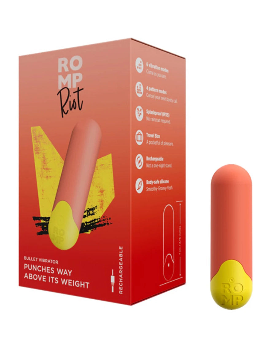Meet the small and mighty ROMP Riot bullet vibrator! This ultra compact and simple toy is a clitoral stimulator that packs some powerful vibrations. With a run time of 60 minutes and 6 intensity levels with 4 pattern modes you can set the perfect pace.
