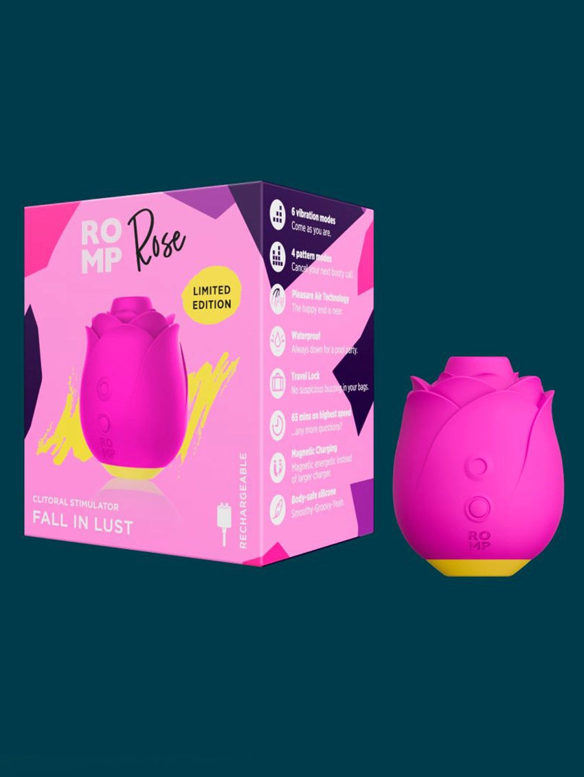 Let yourself bloom with pleasure with the Romp Rose 2.0. This fan-favorite rose-shaped pleasure toy is now upgraded with a more powerful motor, enhanced durability, convenient travel-lock feature, and the iconic rose design. Explore sensation your way with 6 intensity levels and 4 teasing pattern modes. Whether you’re indulging solo play or sharing the experience, the Romp Rose 2.0 is a gift that truly keeps on giving.