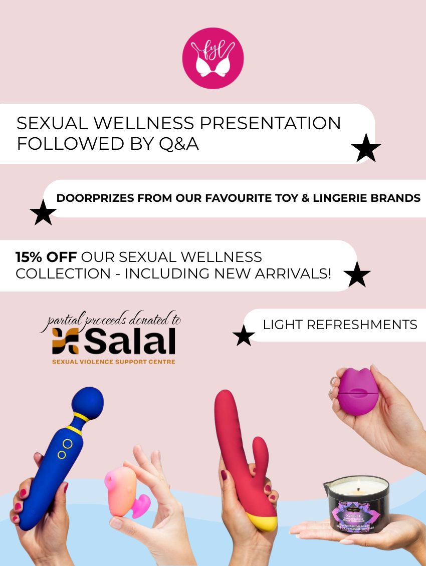 • Light refreshments, prizes and 15% off our sexual wellness collection at this event!