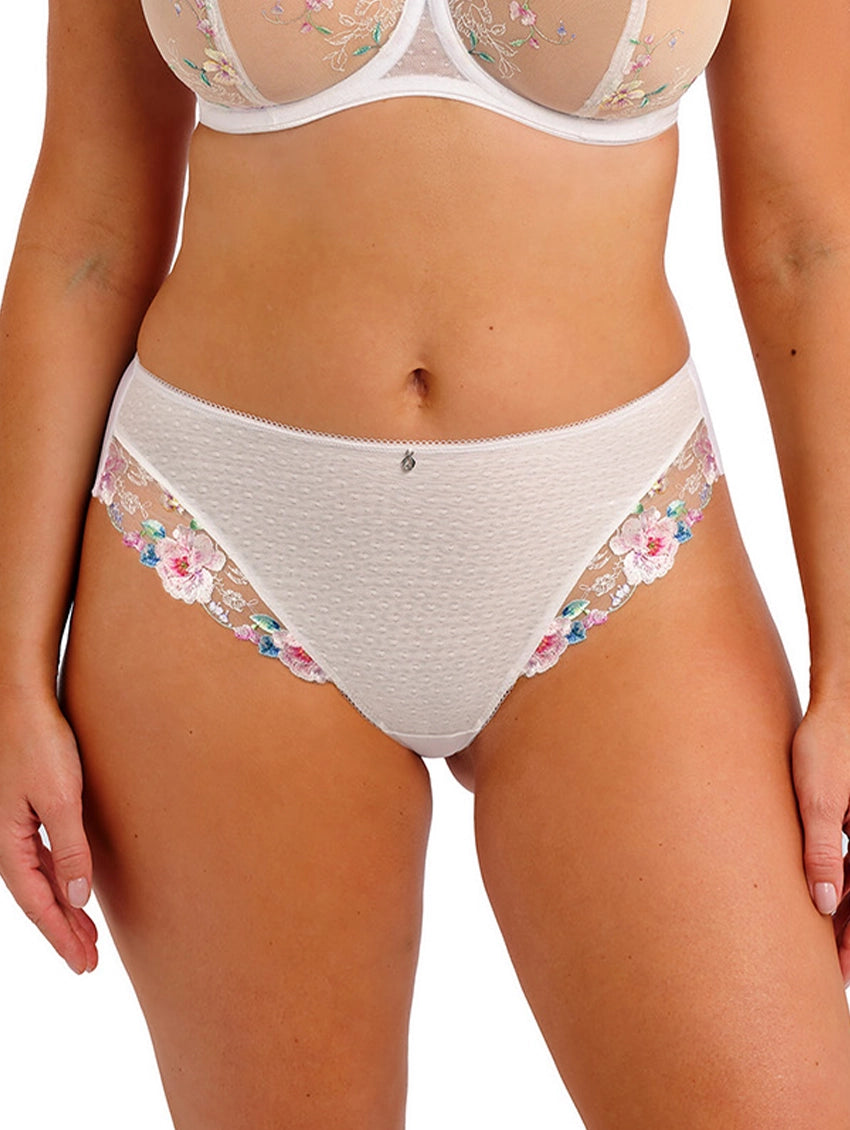 Bloom into spring with the new Fantasie Lilia Thong. Featuring floral embroidery on the cut of the leg and a seamless back finish this thong panty is the perfect match for your new Fantasie Lilia Balconette Bra.