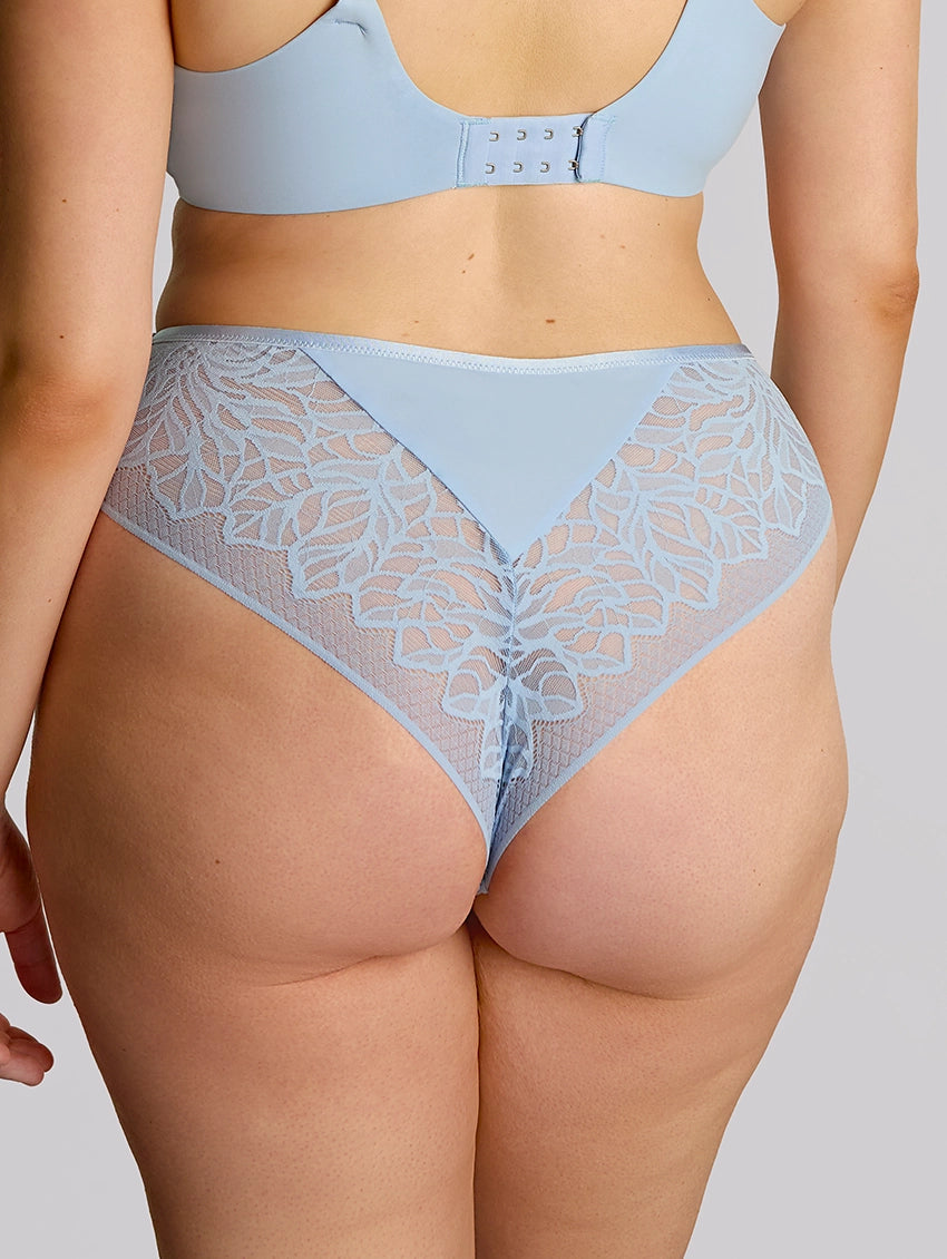 Complete your look with the Sculptresse Sophia Brazilian! It's designed to perfectly complement the coordinating bra. Crafted with the same intricate floral and geometric diamond lace, this high-waist, high cut briefs offers cheeky coverage and a flattering silhouette, while the soft opaque panels provide added comfort and confidence.