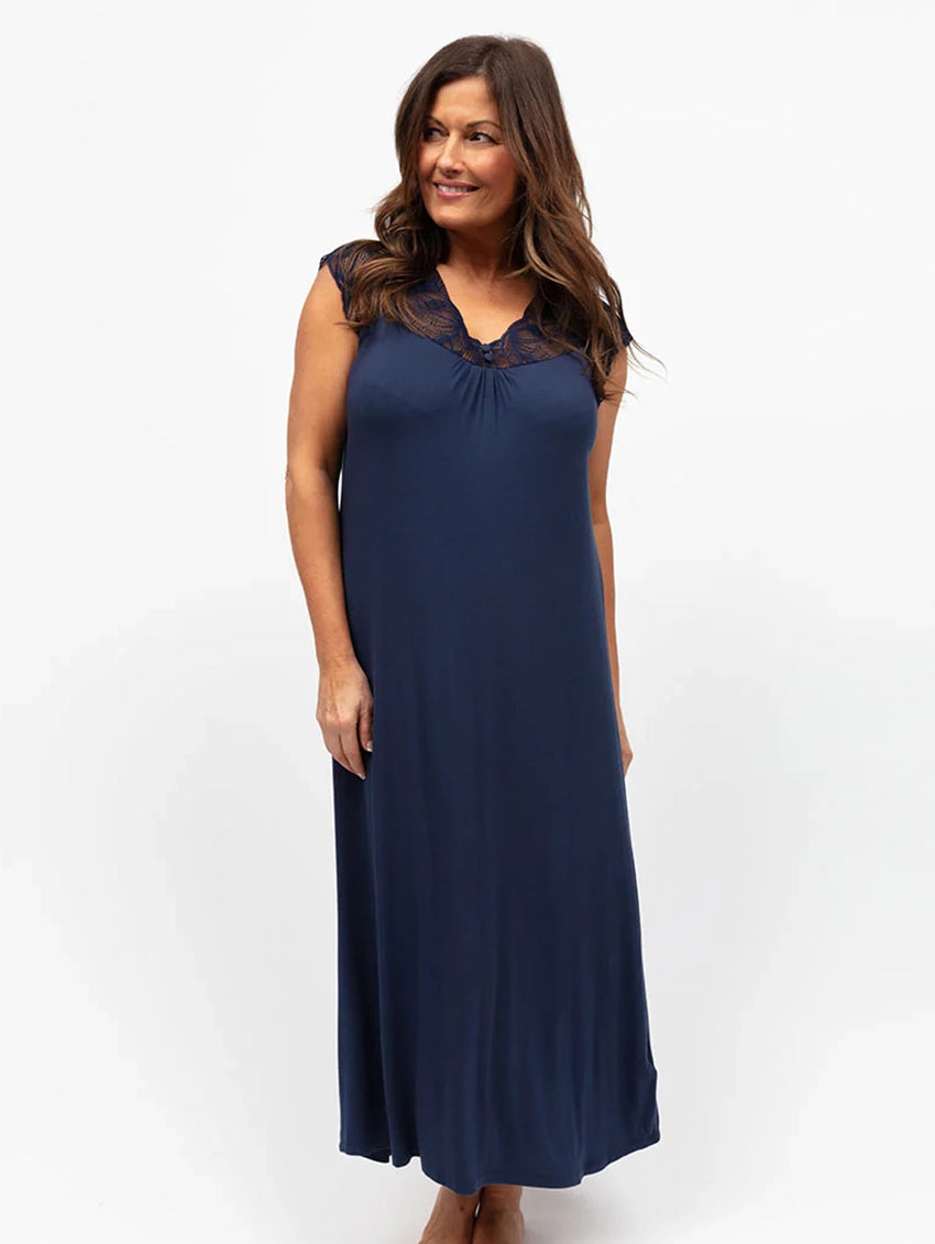 Rest in comfort with the Cyberjammies Isabella Lace Nighty. Made from ultra-soft, breathable jersey fabric to keep you cool and cozy, beautiful geo lace cap sleeves for a layered look, and a comfortable maxi length for a restful night sleep or lounging at home.