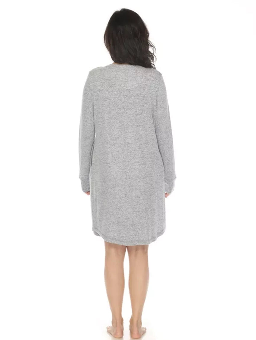 Lounge in ultimate comfort in the White Mark Sleepshirt. Featuring a "Love" graphic print on soft fabric, long sleeves, and side pockets.