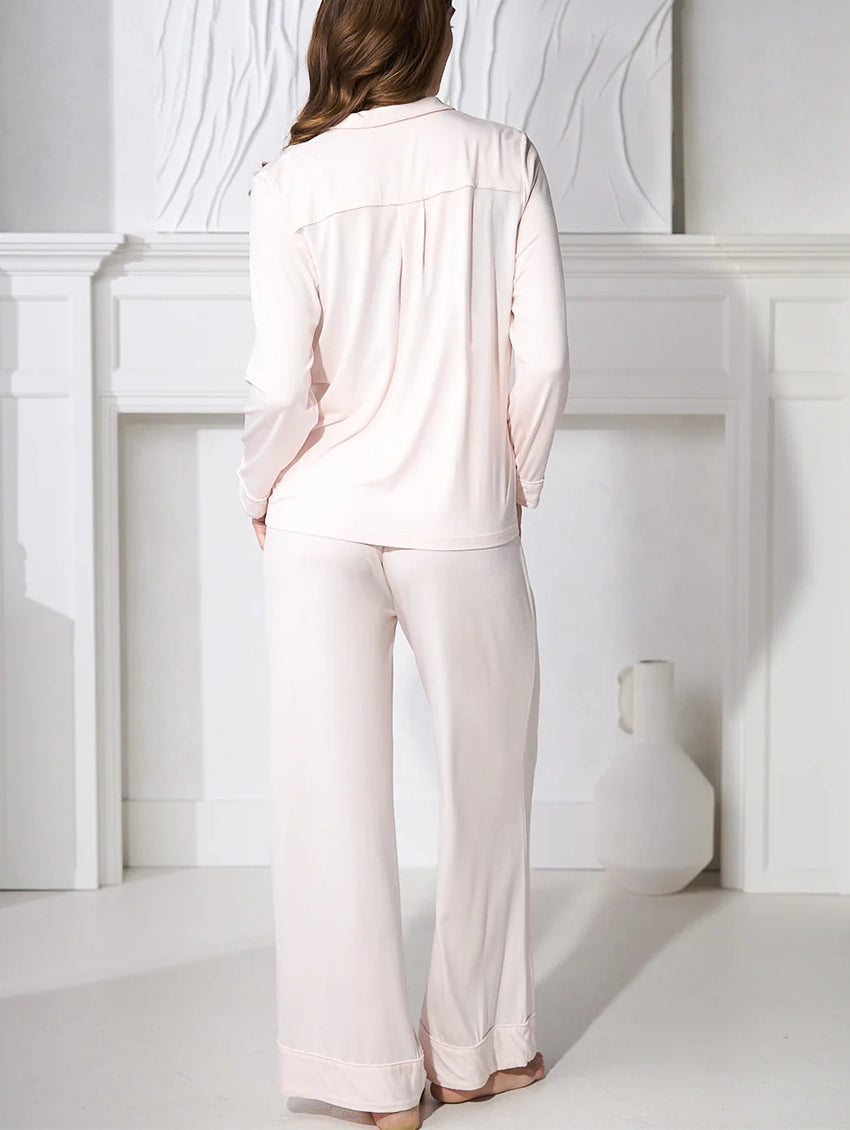 Stay cool at night with the Catalfo Heavenly Pj Set. Featuring soft and breathable modal fabric, long sleeve button top, and elastic waist with drawstring and side pockets pants.