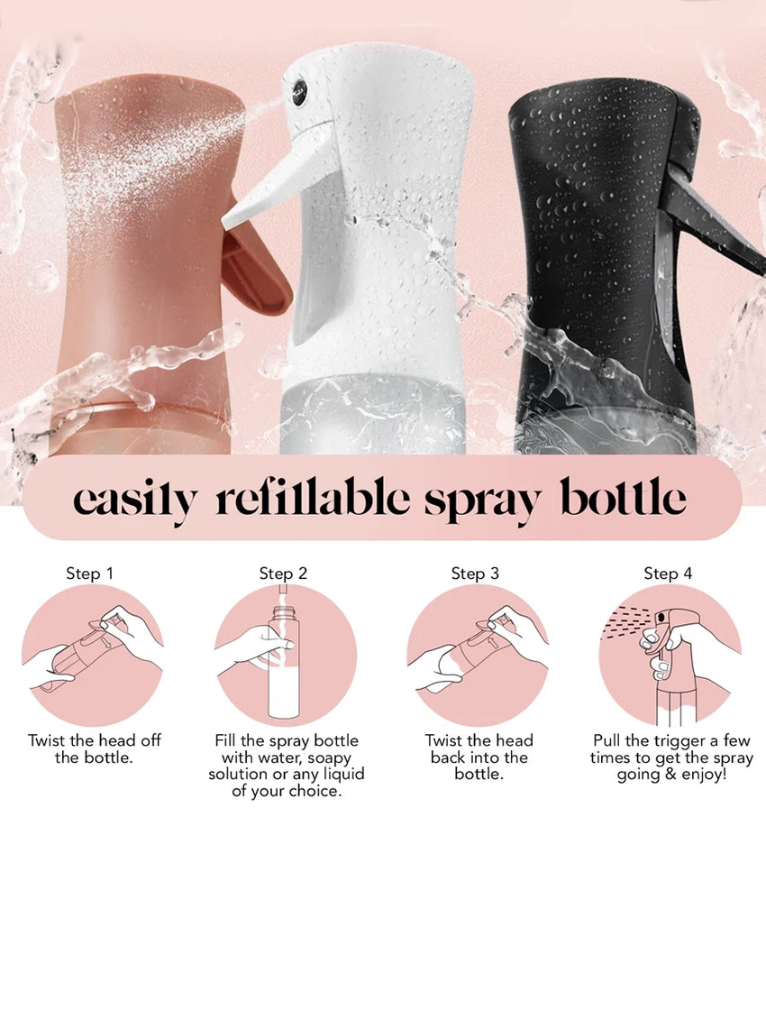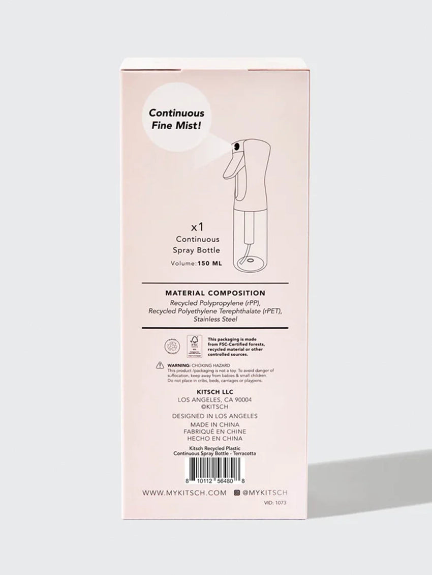 Refresh and rehydrate your curls and waves with the Kitsch Continuous Spray Bottle. Compact design that gently sprays product evenly and smoothly with water or other lightweight liquids.