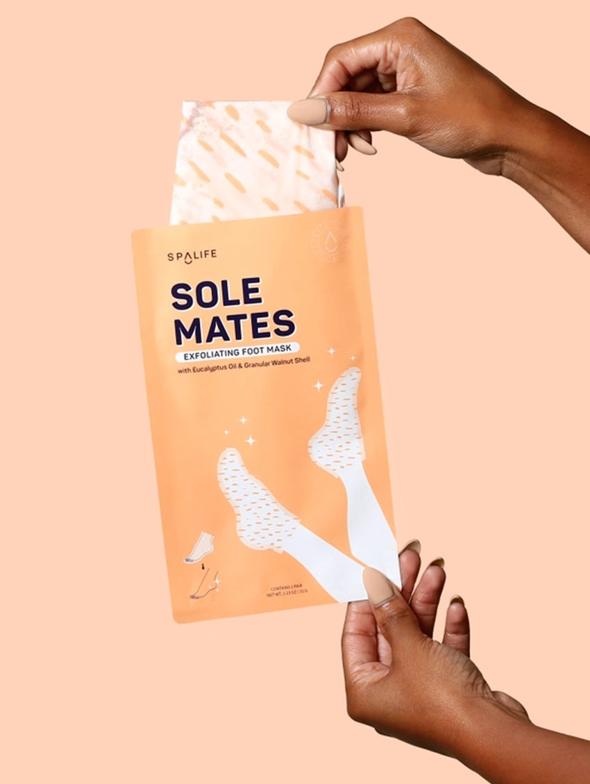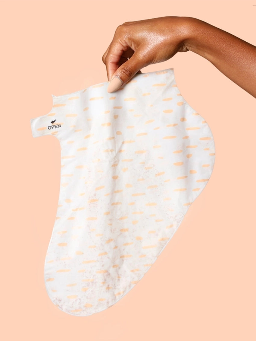 Pamper your feet with the Exfoliating Foot Mask from My Spa Life. This little self care bootie is infused with macadamia oil, eucalyptus oil, and has walnut shell granules to gently tackle tough calluses. So keep your feet smooth and healthy with these must have masks!