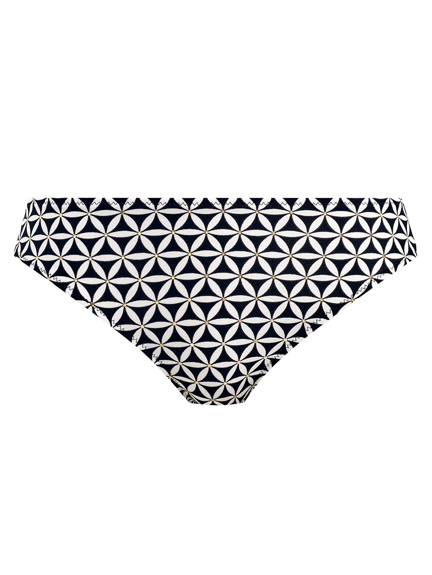 Channel the vibe of vintage vacations with the Koh Tao Bikini Brief from Freya. Featuring a stunning geometric monochrome print with pops of gold, flattering leg cut, and cheeky rear coverage. This swim bottom is elegantly chic for all occasions.