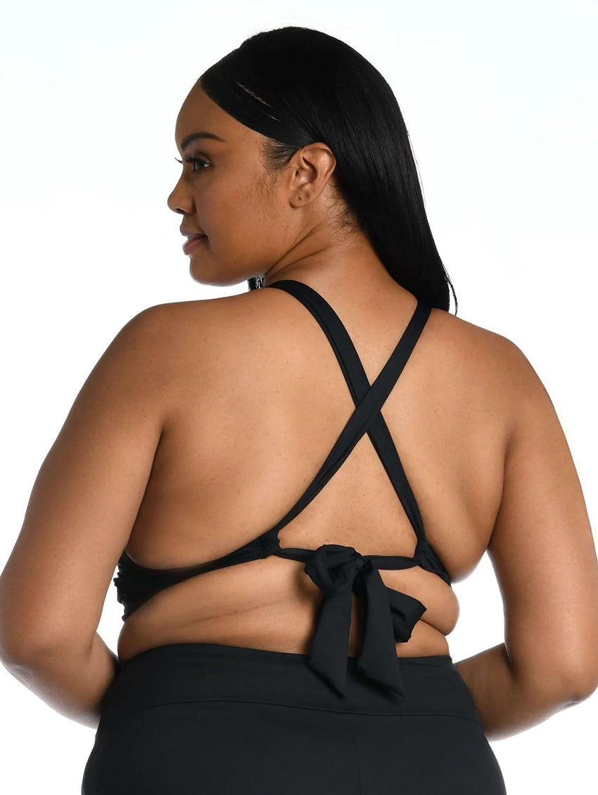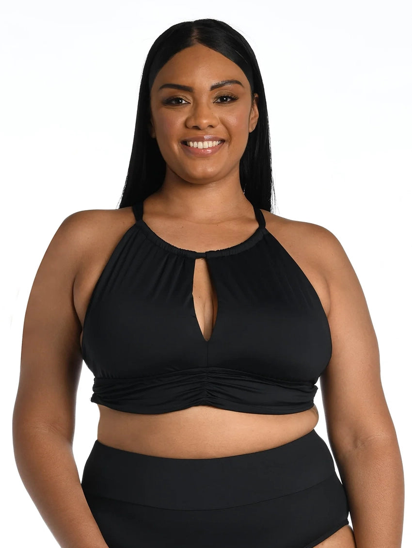 Stay vacation ready with the La Blanca Hi-Neck Longline Bikini Top. This stylish design features a modern high neckline with front keyhole and flattering longline band for added support, and adjustable and convertible tie straps for a personalized fit.