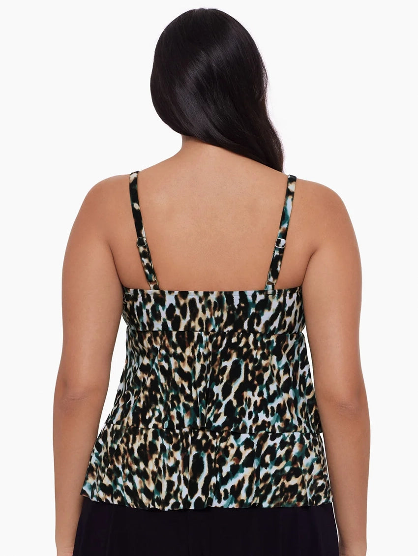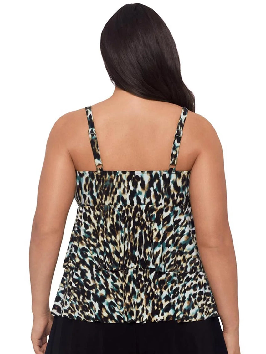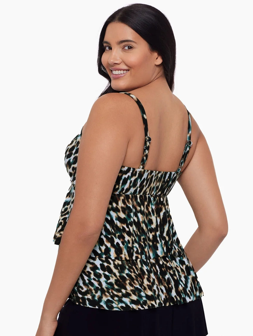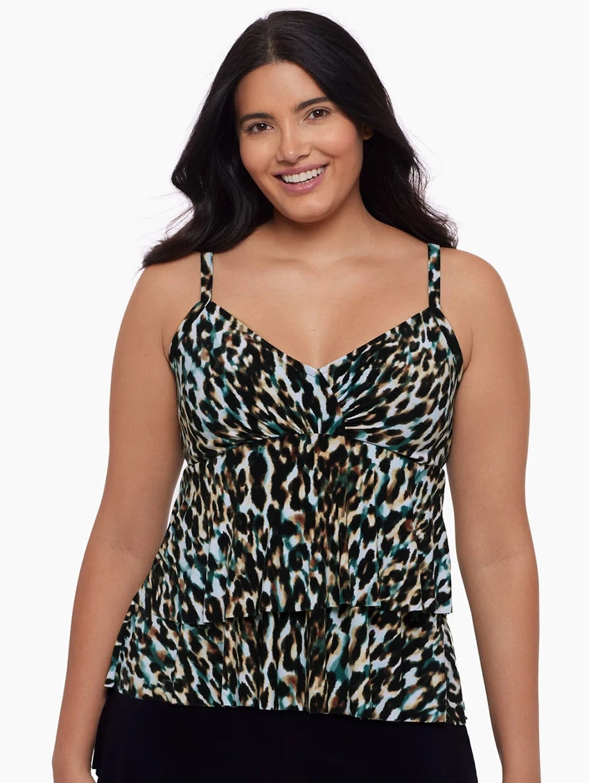 Bring on the beach with the Trimshaper Leona Tankini. This swim top is lined with a smoothing layer to keep you confident and a double tired bottom to disguise any insecurities. It's the perfect piece for vacationing in style!