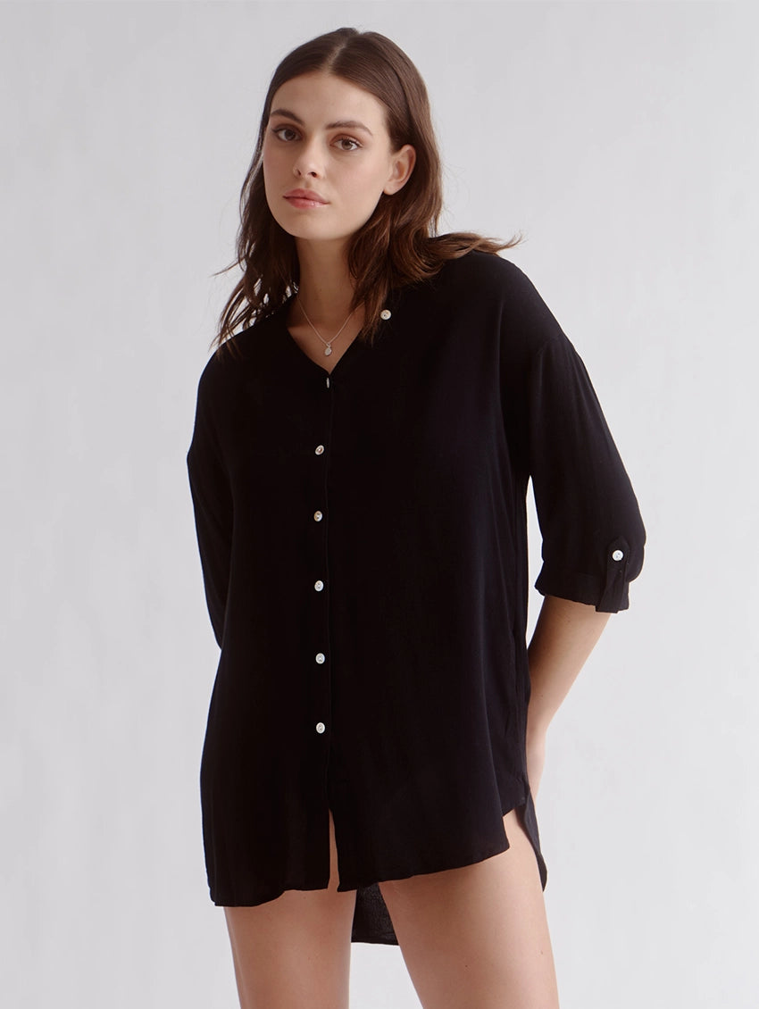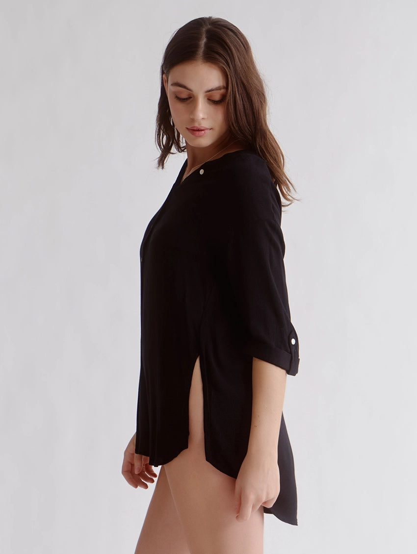 The Everyday Sunday Cover Up Tunic is a lightweight, easy-to-wear layer for vacation or everyday use. It features a soft fabric, button-up V-neckline, and a relaxed, loose fit. Wear it over your swimsuit at the beach or with your casual outfits while running errands.