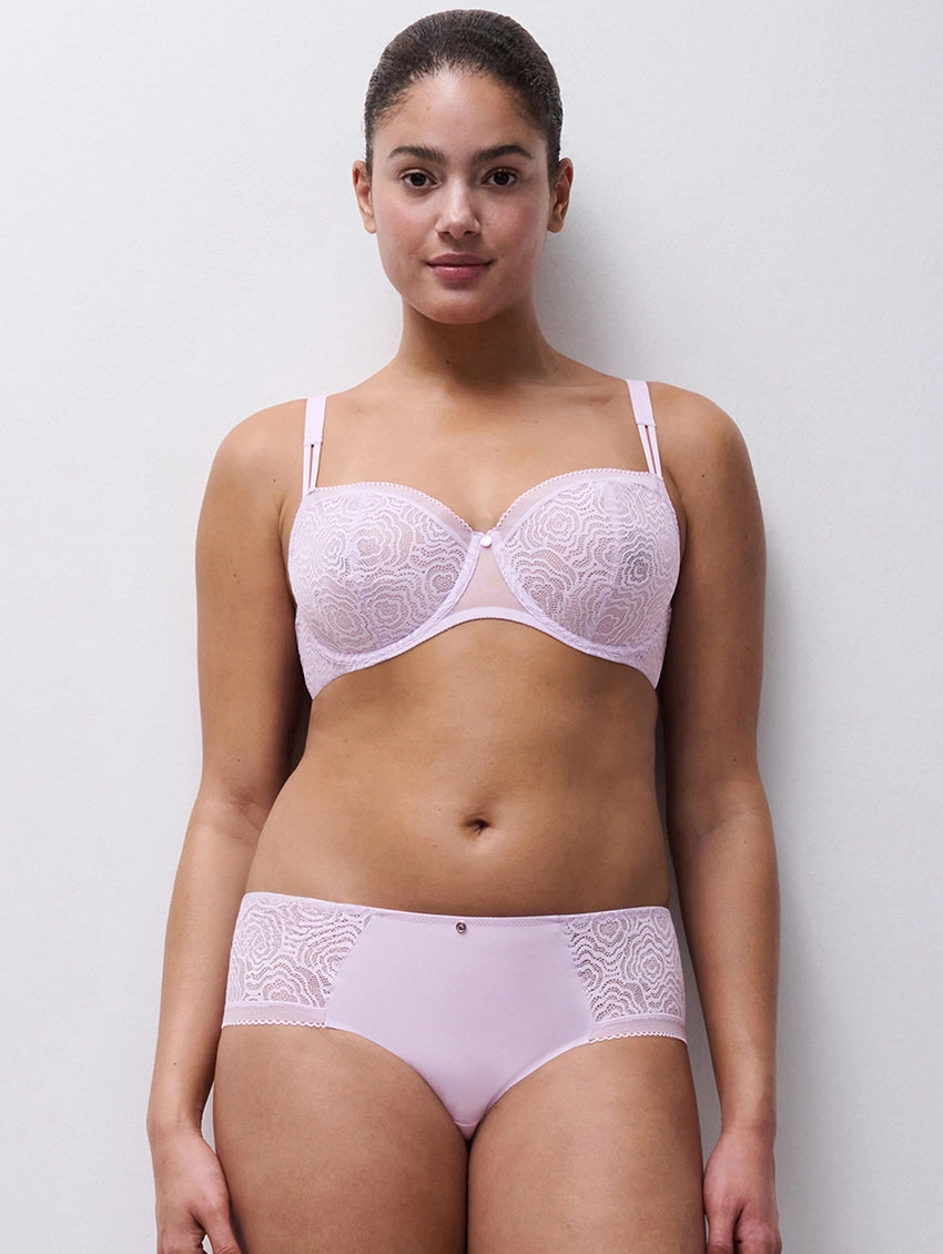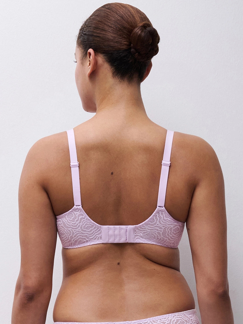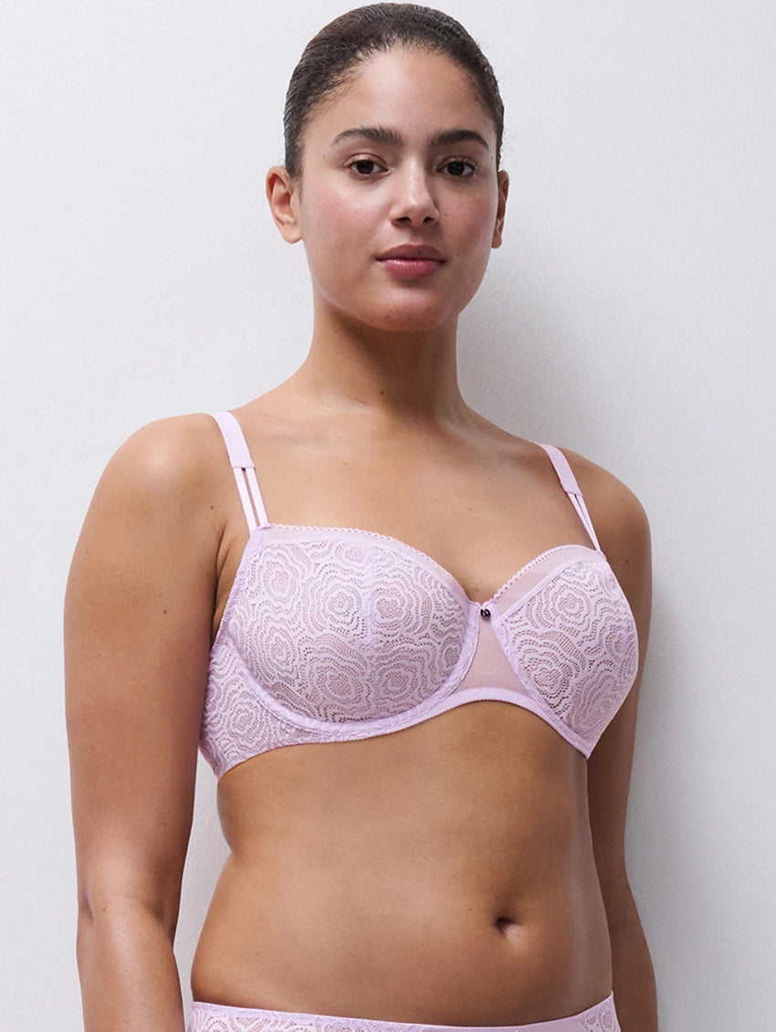 The Chantelle C Jolie Demi Bra brings new meaning to everyday sexy. With subtly sheer floral lace, decorative split straps, and comfort features like a U-back, padded hook and eye, and lined sides that won't scratch. You won't think twice when reaching for this bra.