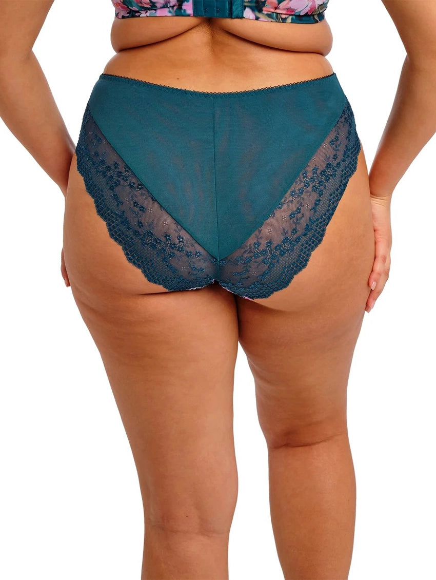 The Elomi Lucie High Leg Brief is the perfect match to the Lucie Plunge Bra. Based on the popular brief from the Morgan collection, this brief features a flattering high cut leg with a sheer stretch lace back for a comfortable fit that won't dig in.
