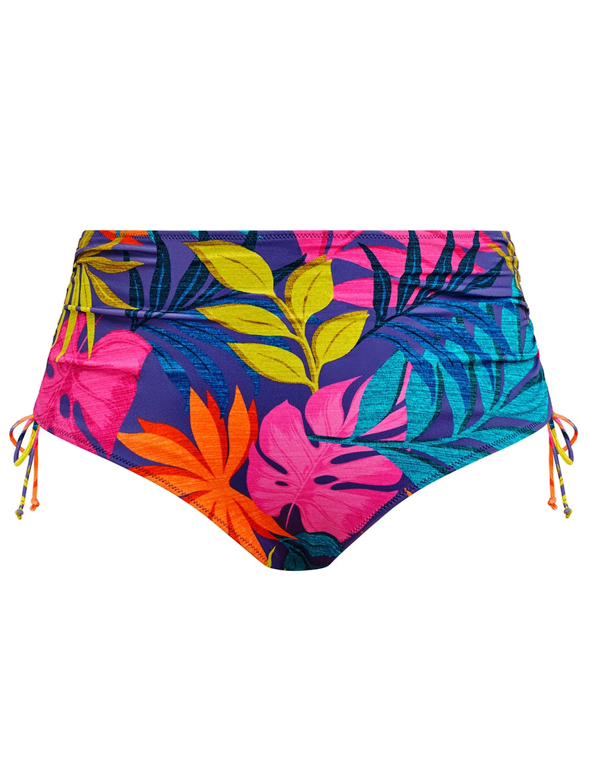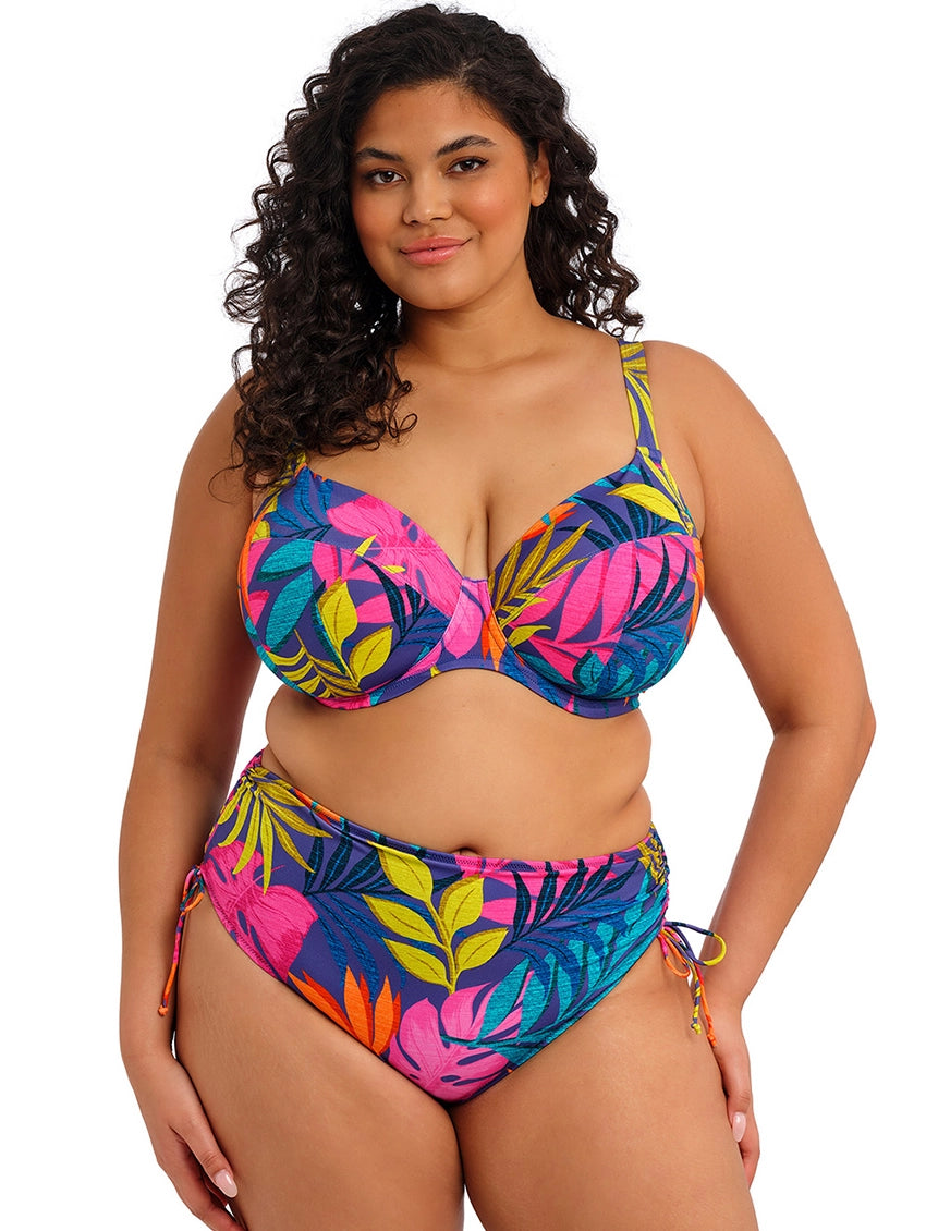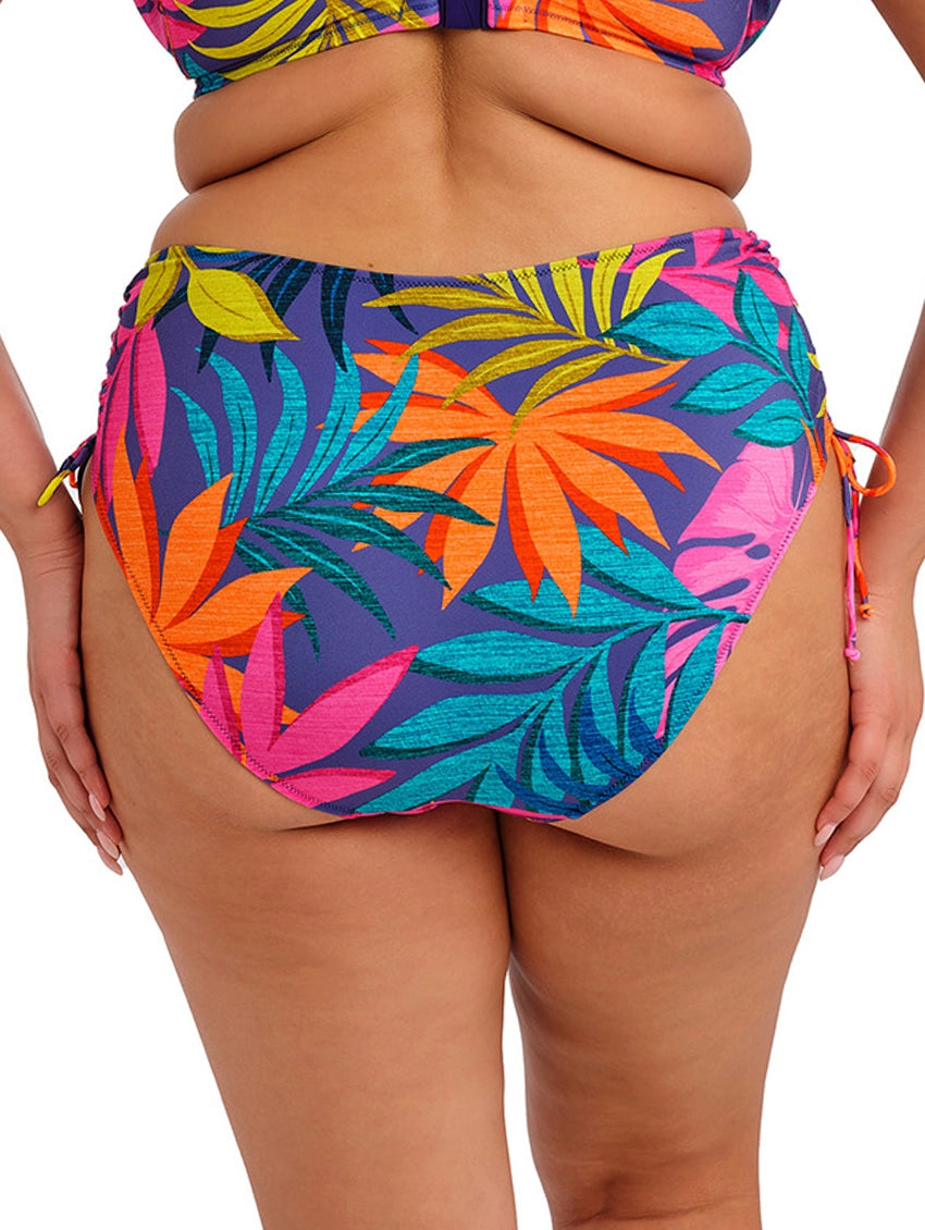 Be prepared to razzle dazzle other beach goers in the Porto Rafti Adjustable Bikini Brief from Elomi. This swim bottom is high rise with an adjustable cut leg and with a vibrant palm print in pinks, yellows, oranges, and blues it brings all the best vibes that are sure to brighten your style.