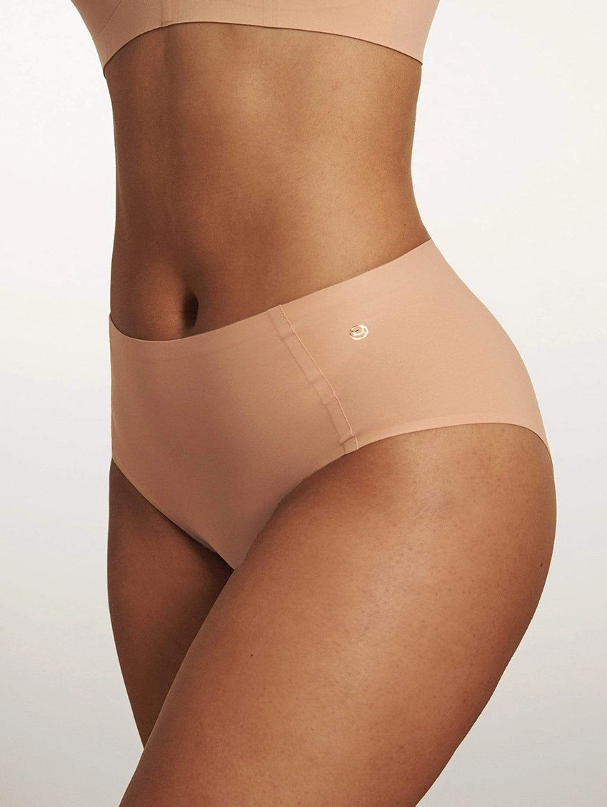 The ultimate no-show bikini from Evelyn & Bobbie. This classic style has a flattering silhouette and offers all day comfort. Seamless under any outfit and sure to become a staple for day to day wear.