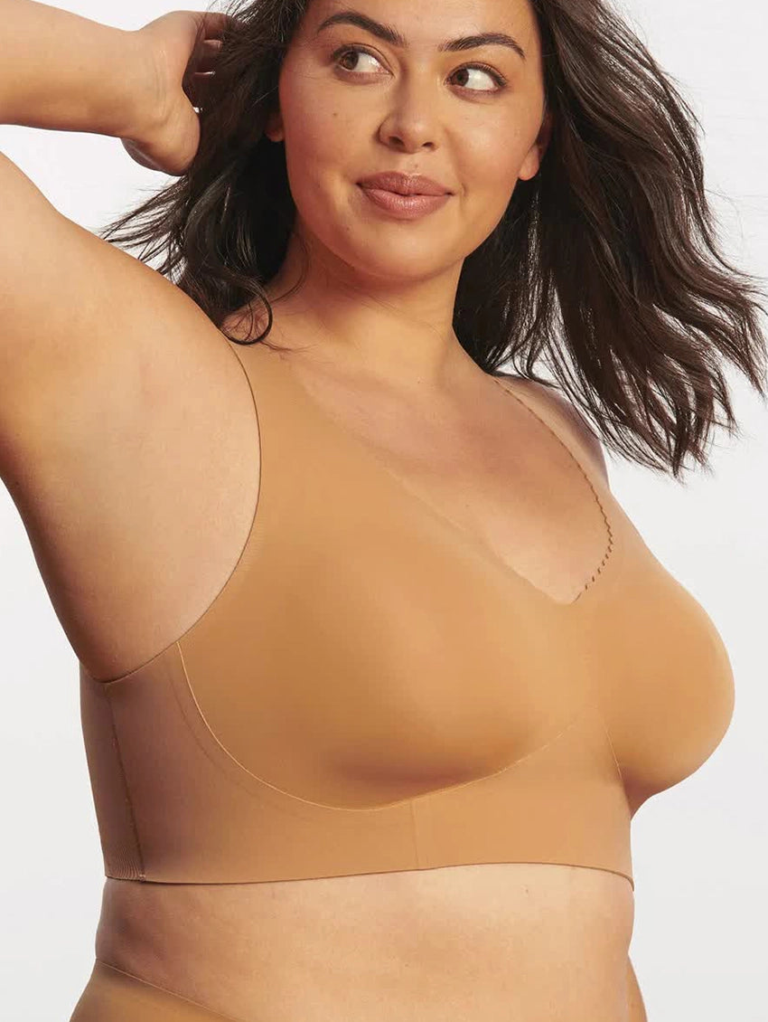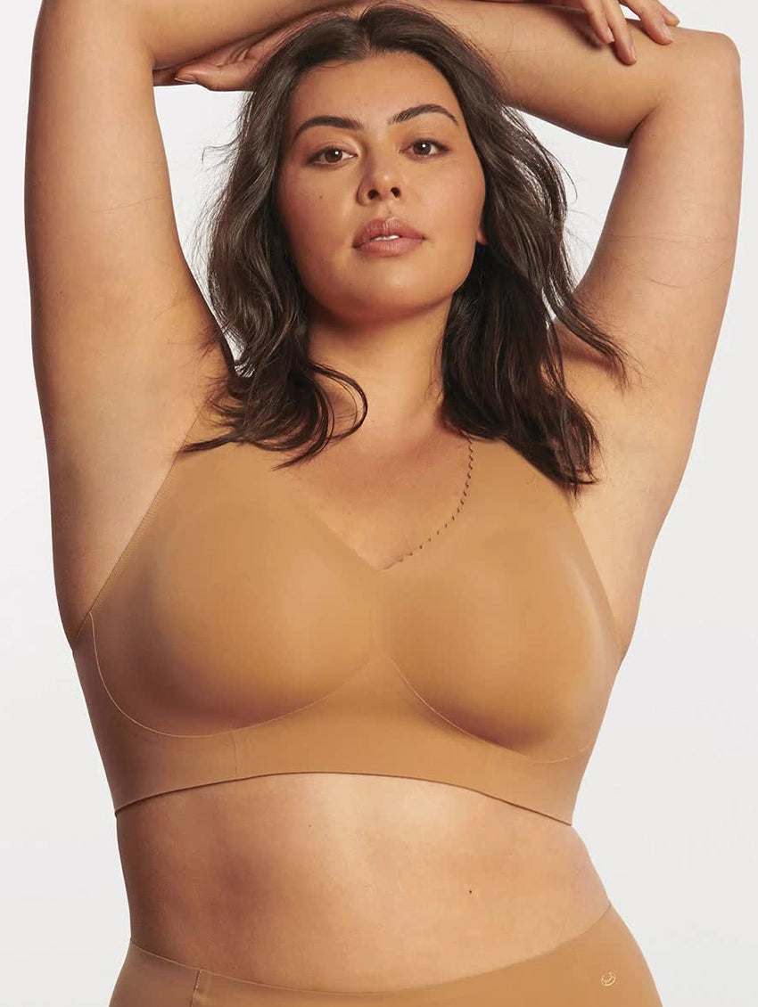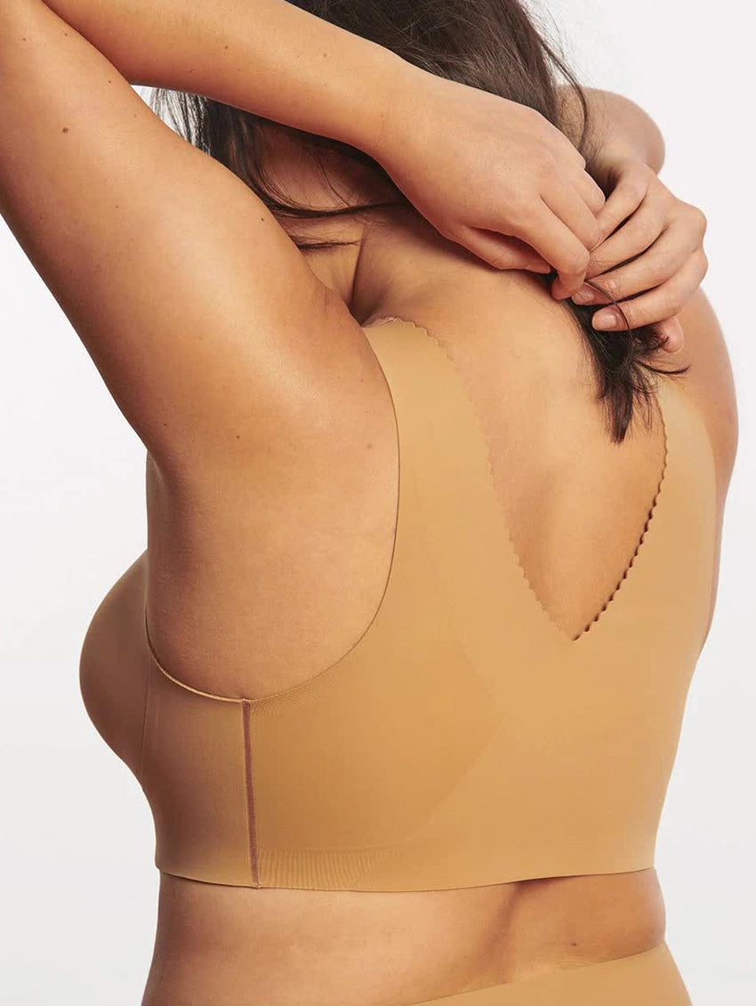 This great design from Evelyn & Bobbie features a deeper v-neck and scalloped edges in the front and back. It keeps the same smooth wireless lift as the Defy with elevated style and cleavage.