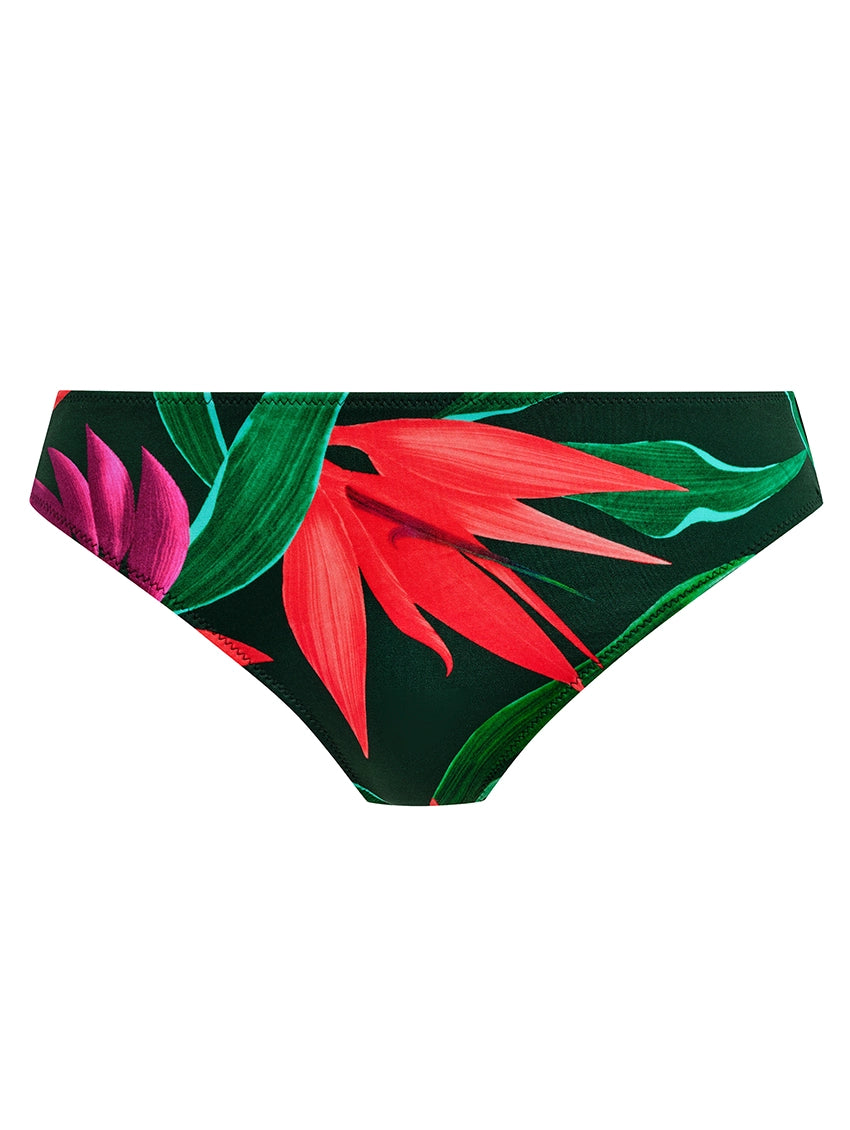 The Fantasie Pichola Mid Rise Bikini Brief is an escape to paradise! It features a moderate coverage rear, a hipster style rise, and a beautiful, lush tropical print. You can't go wrong with Fantasie Swim!