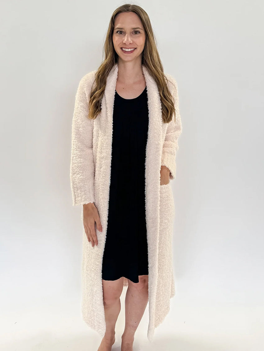 This long Robe from Lounge By Jan Marie is the perfect piece to add to your relaxation routine. Featuring comfortable plush fabric, long length, tie waist belt, and pockets for snacks or other essentials, it's an easy choice for a cozy night in or a stress free morning.