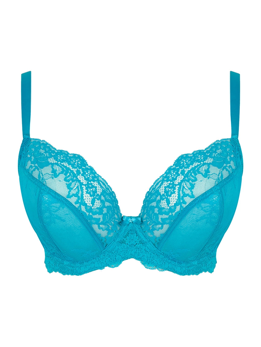 The Ana Plunge Bra from Panache is back in a vibrant blue! The stretch floral lace makes it a great option for everyday wear. Made with stabilizer lined bottom cups, an inner side sling for lift and support, and a plunge neckline that's perfect for low cut tops or dresses.