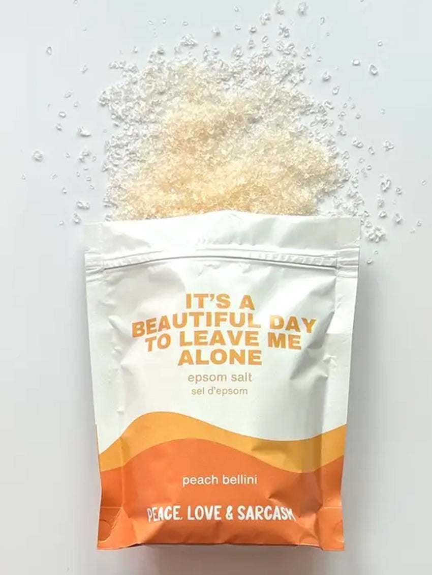 Cancel your plans, turn off your phone, light some candles, and luxuriate in the Epsom Salt Bath Soak from Peace, Love and Sarcasm. This bath additive is packed with Epsom salt to soothe your body and fragranced to comfort your soul. So lay back, unwind, and let the wonderful aroma alleviate your stress.