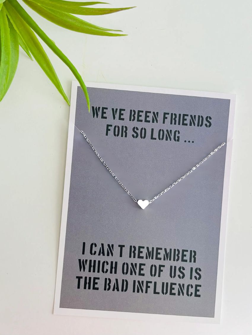 - Card reads "We've been friends for so long... I can't remember which one of us is the bad influence"